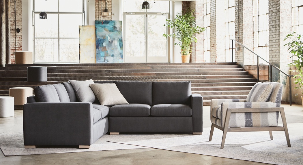 Thursday Sofa and Sectional THIN FRONT RAIL + 7" TALL METAL OR WOODEN LEGS